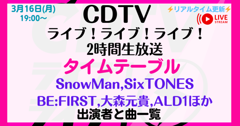 CDTVライブライブ今日3/16 SixTONESの出演時間は何時?