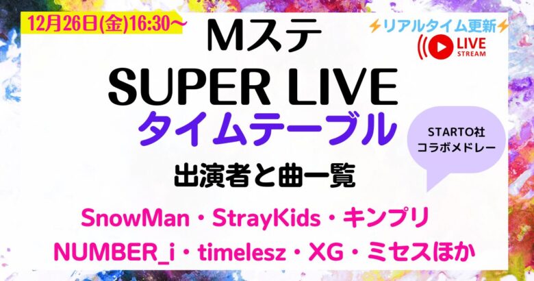 Mステスーパーライブ12/26 タイムテーブル